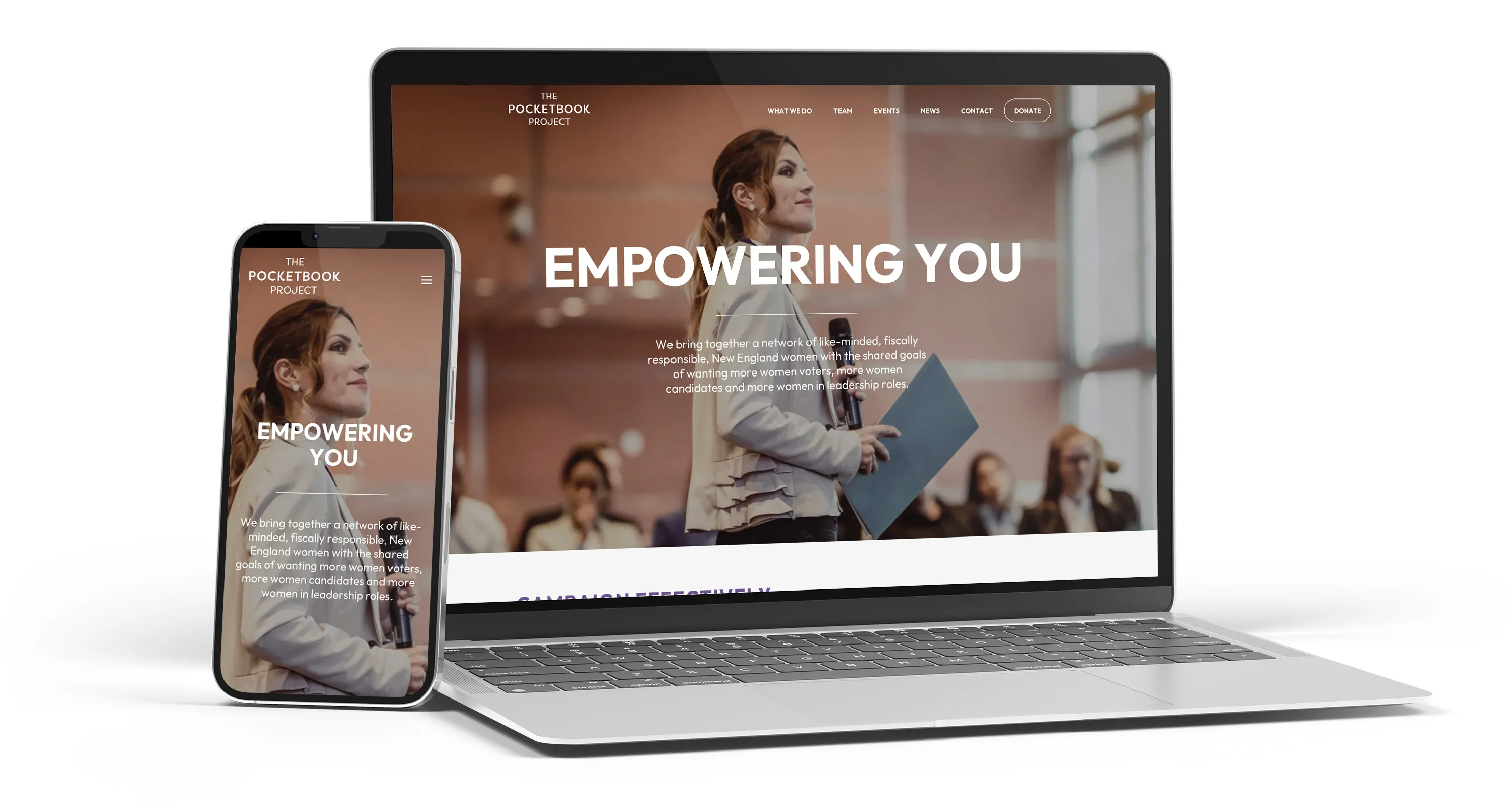 The Pocketbook Project needed a real web presence to support their mission of empowering fiscally conservative New England women to vote, run for office, and serve on boards. Without one, they were losing opportunities to attract participants, build credibility, and promote their events and trainings.